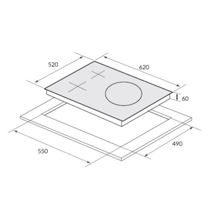 ▶️ Kích thước mặt bếp: 620R x 520S x 60C mm
