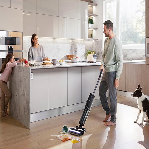 - Liên tục vắt nước bẩn: Hệ thống cạo nổi độc đáo của máy hút bụi Tineco Floor One S7 Pro ép con lăn đang dính bẩn theo từng vòng quay để loại bỏ nước bẩn.