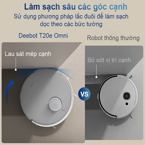 Robot hút bụi lau nhà Ecovacs T20e Omni làm sạch sâu các góc cạnh