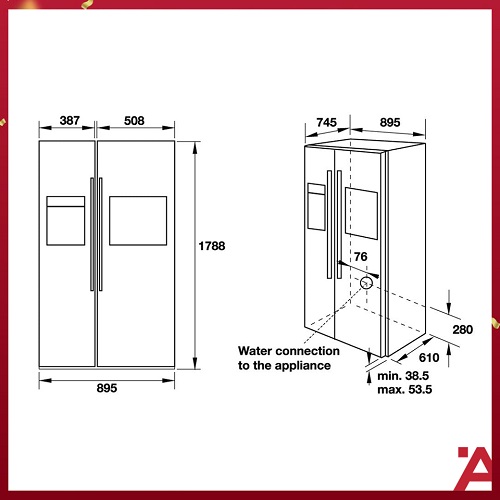 Loại sản phẩmTủ lạnh side by side Hafele